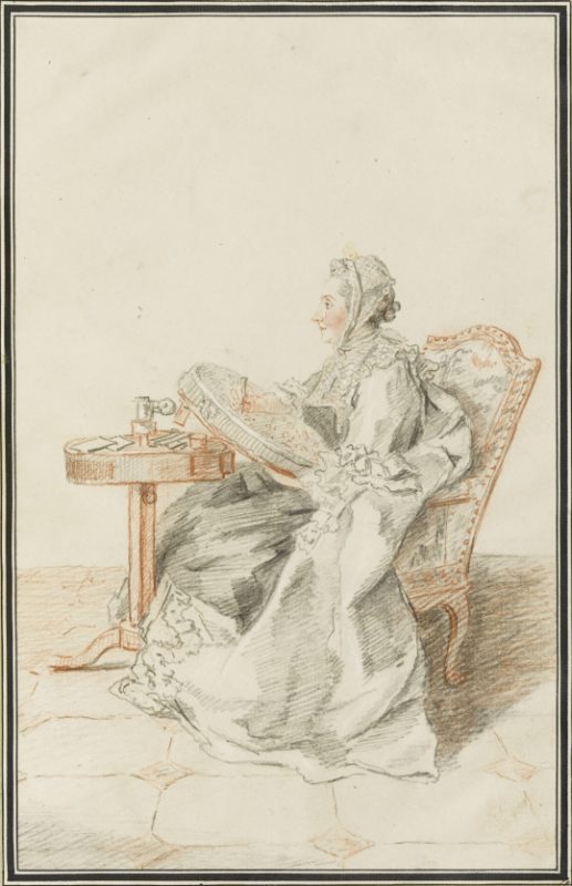Madame de Pompadour elle-même fut séduite par cette technique et s’y adonna avec application. Précision, soin, dextérité, patience, sont les maîtres-mots du Point de Beauvais.