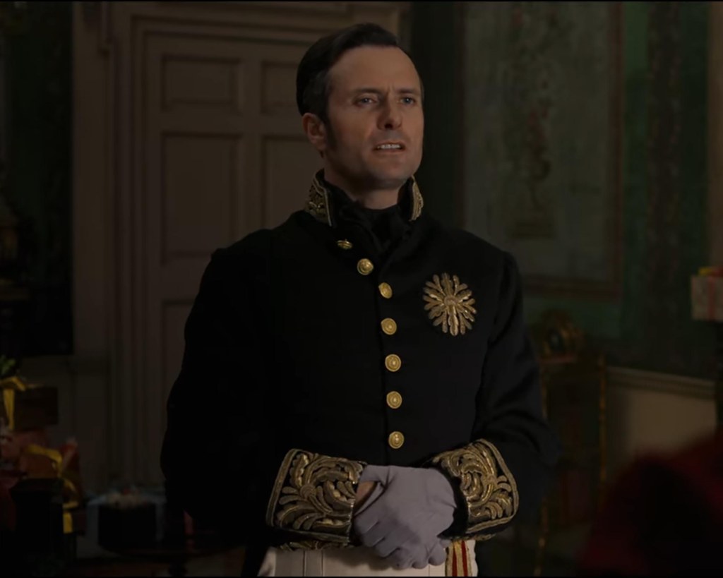Dans cette série, il n’est pas étonnant de retrouvé de la broderie d’Art, notamment dans la famille du Prince Léopold. L’un des personnages, Daimler porte un costume brodé de feuilles de chêne, au col et aux manches. Le modèle pourrait se rapproché d’habit de Général de Division , datant du Second Empire. Léopold lui, a deux très jolies feuilles de chêne brodées sur un velours bordeaux. On y voit un passé plat droit sur découpes, des points de tiges ainsi que des paillettes.