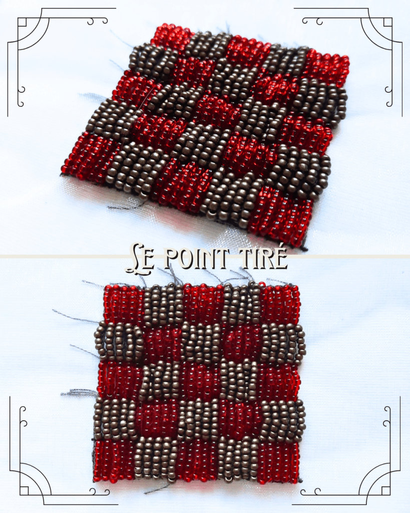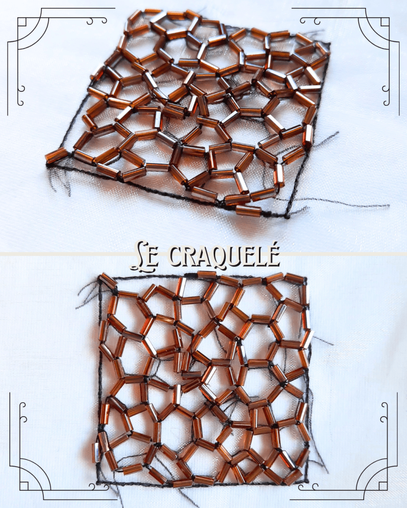 Les perles posées en vermicelle se montrent sous toutes les faces, ce qui crée des effets de lumières très intéressant.