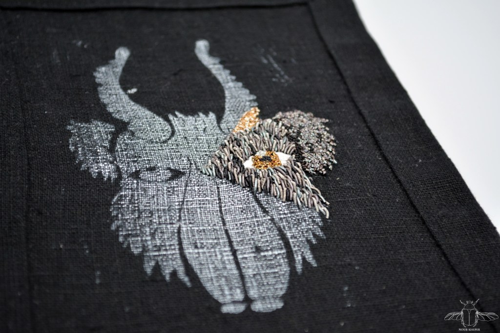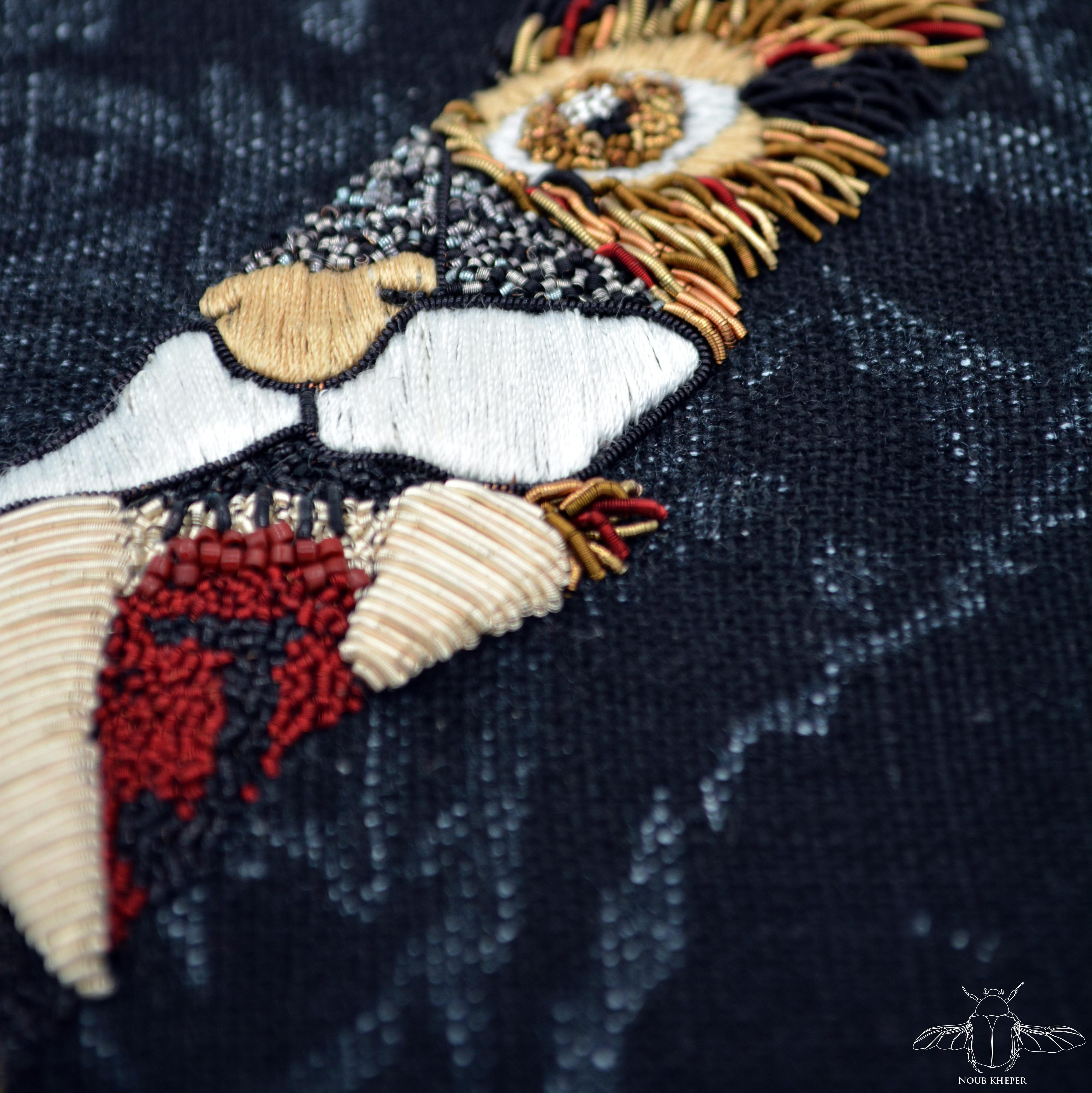 En utilisant la broderie, la broche devient l’objet qui met en valeur un savoir-faire ancestral, mais également la figure qui y est représentée.