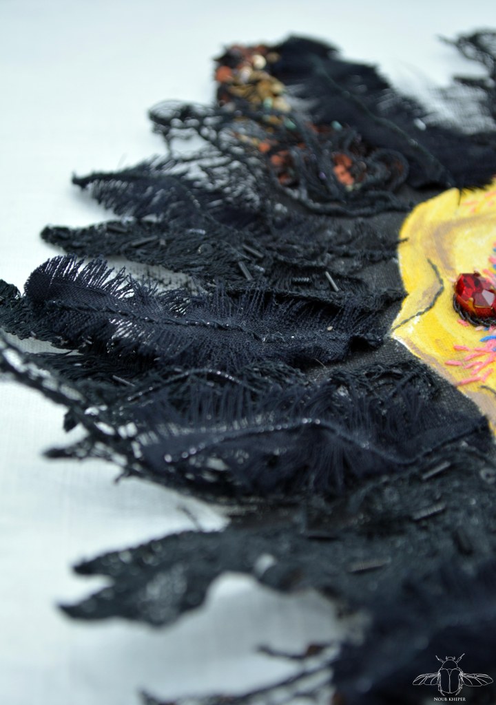 Fils métallique / Jaseron / MO en lin / Peinture textile / Perles / Paillettes / Pierres Swarovski